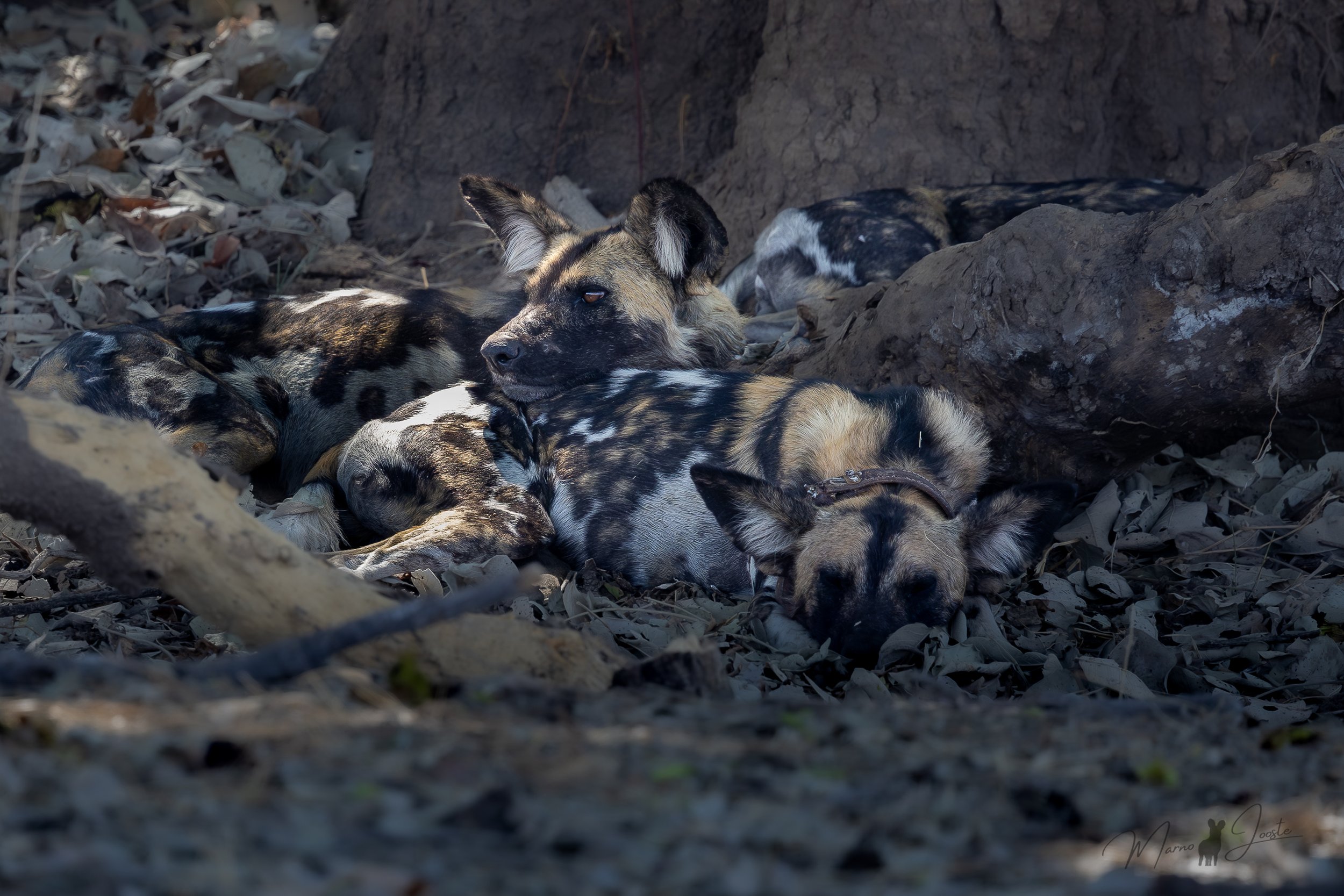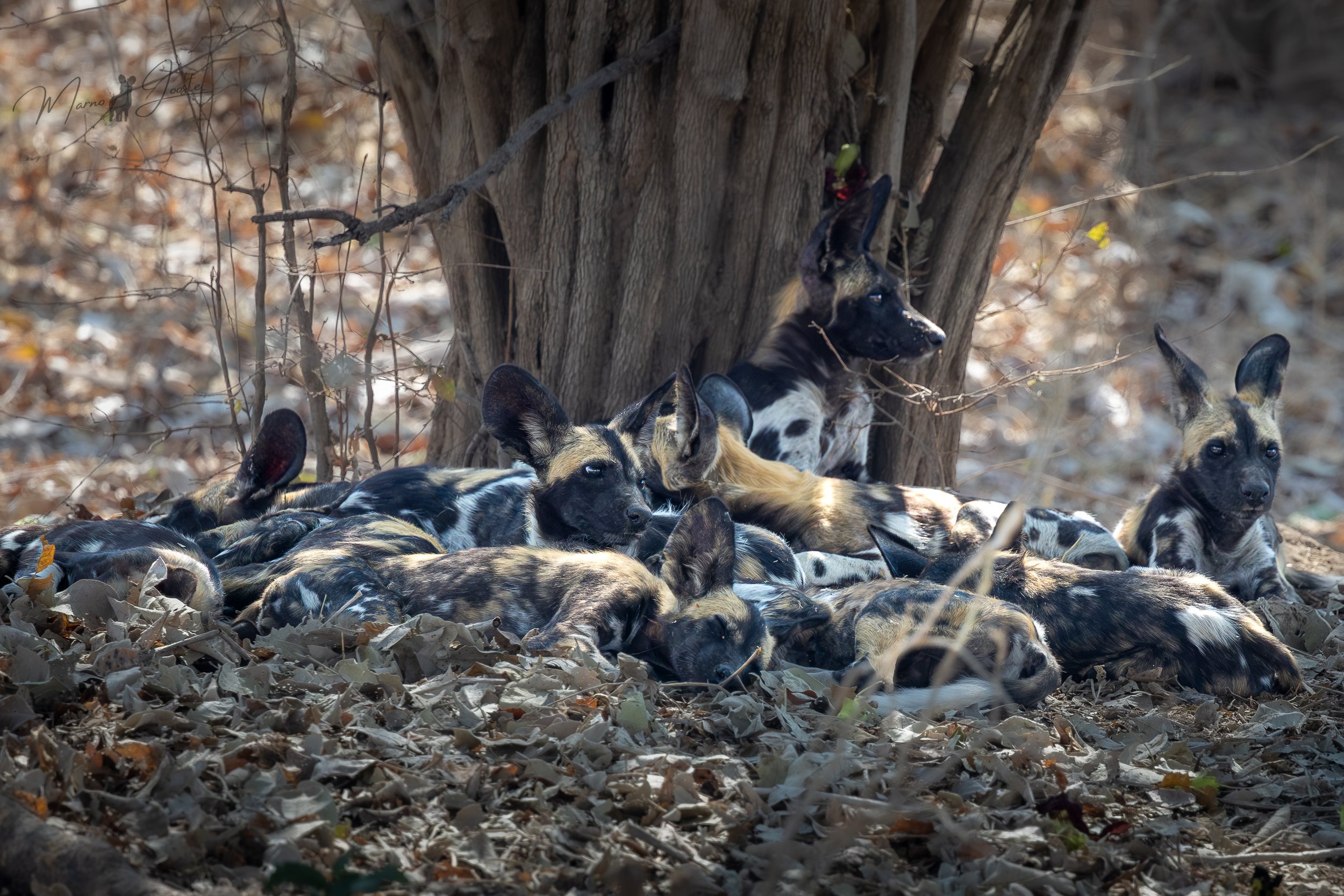 We found an entire pack resting in the shade, accompanied by ten pups, all clearly well-fed and relaxed after what must have been a successful morning hunt. There was little movement β just lazy stretches, yawns, and gentle jostling for the best sleeping positions β but the privilege of watching these endangered predators at rest was profound. Wild dog sightings are never guaranteed, and to encounter a full pack with pups felt like a gift from the valley. It truly was special to have been able to witness all of South Luangwaβs key predators within the first week of arriving in the park.