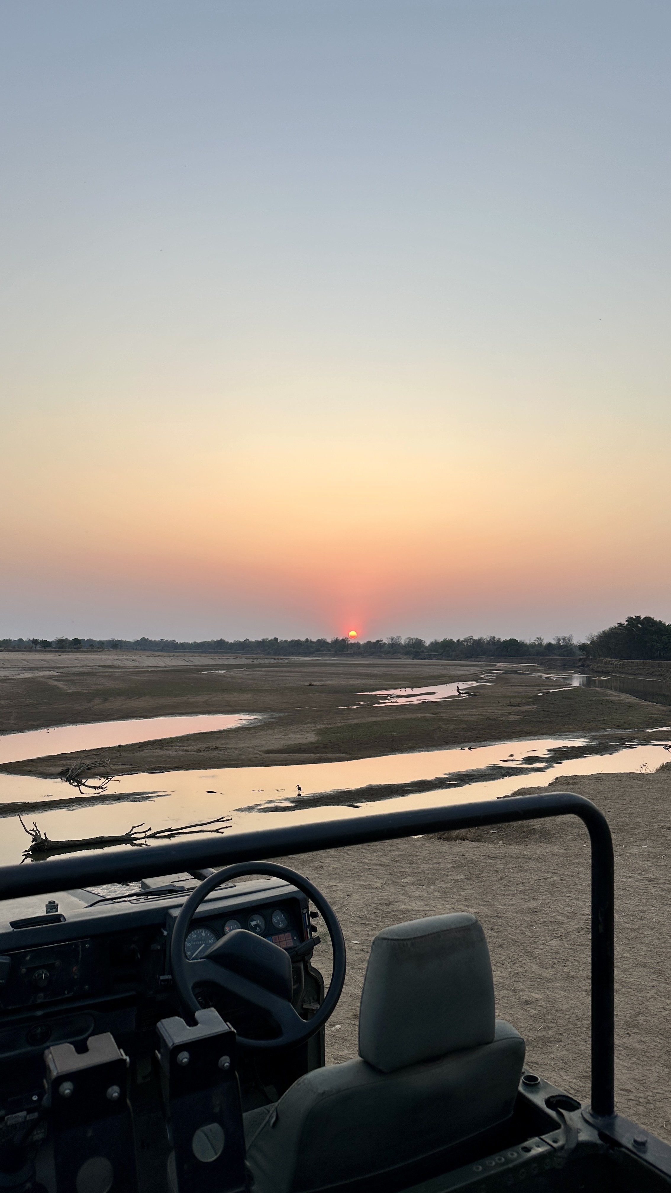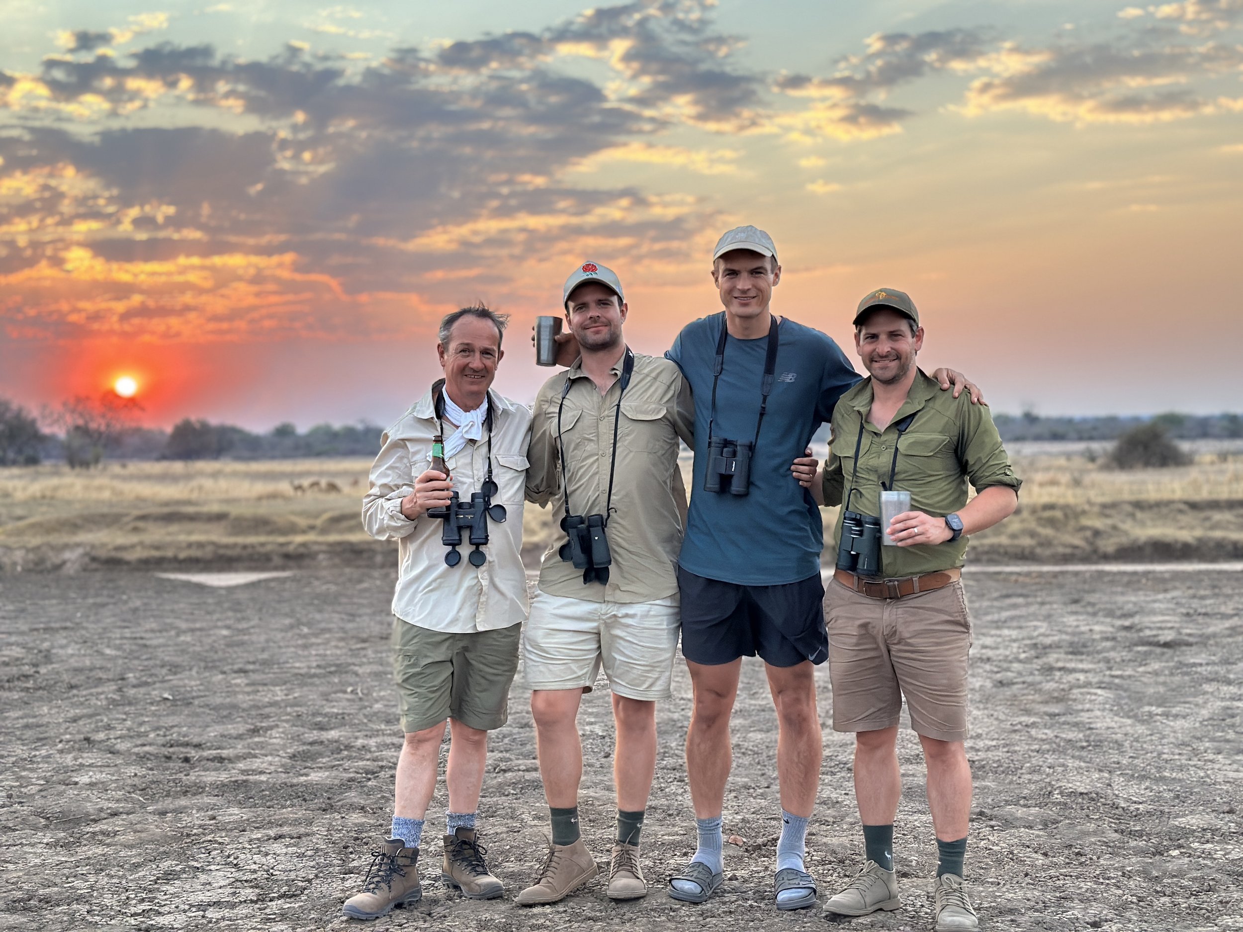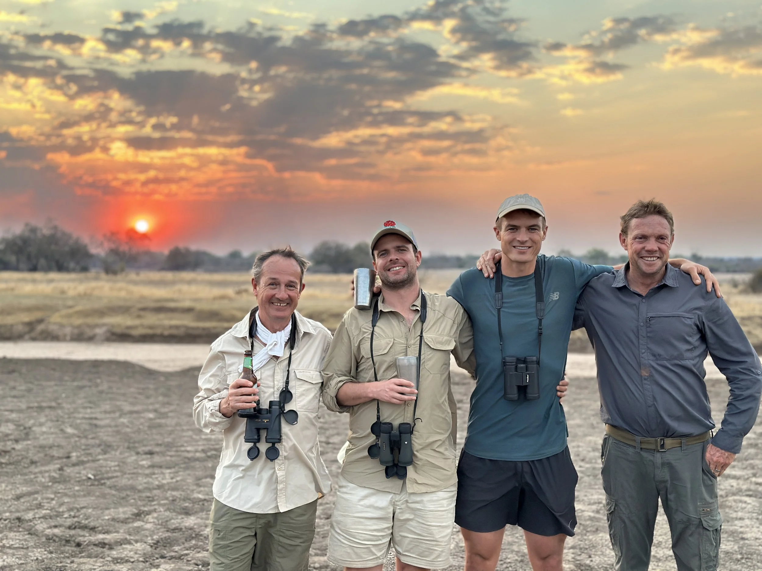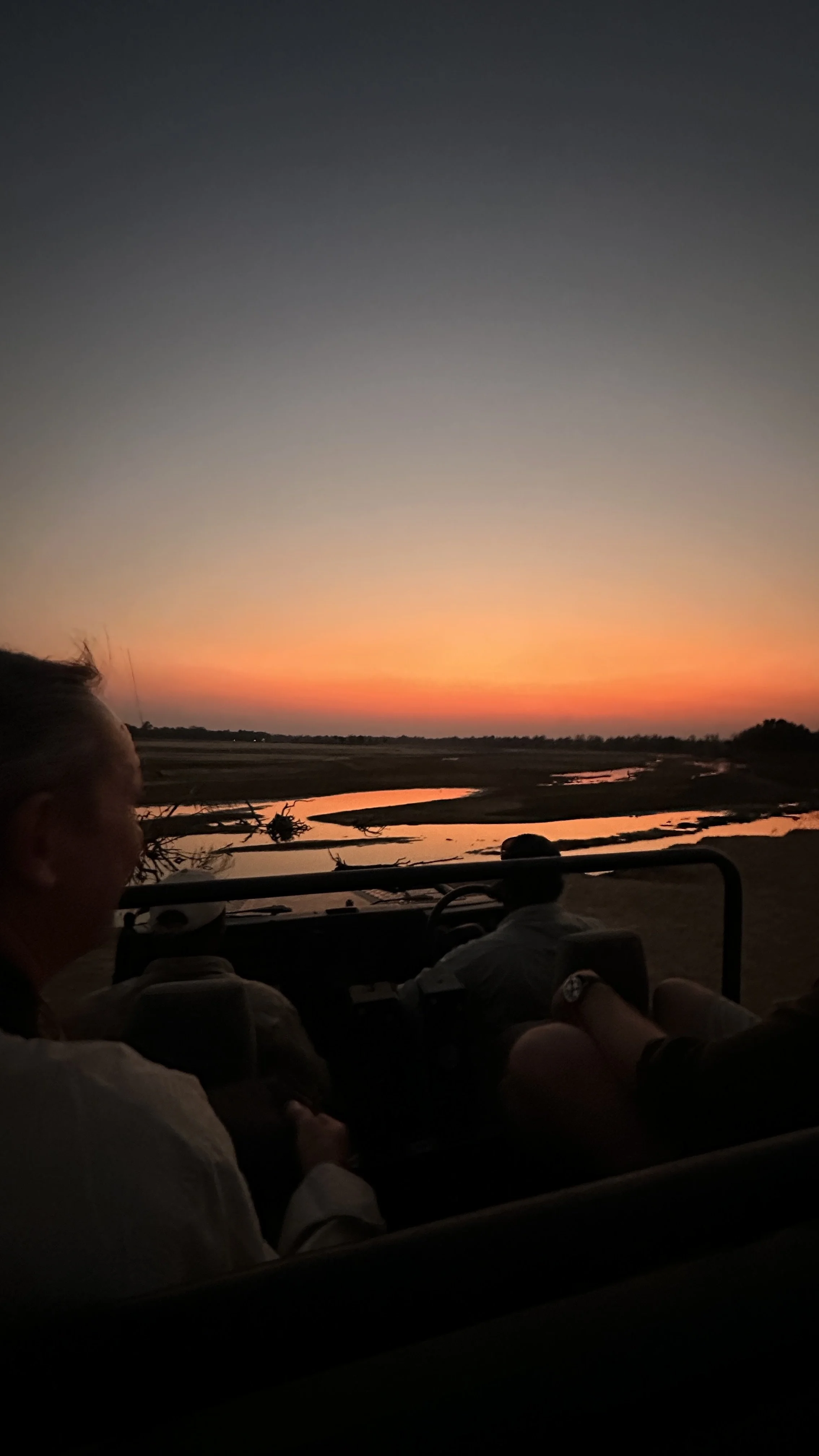 It was one of the most beautiful sunsets of the trip. Right at the waterβs edge we watched pied kingfishers, malachite kingfishers, green-backed herons, and the unmistakable African skimmer, all against a backdrop of snorting hippos and a glowing river. Gin and tonics in hand, the moment felt timeless.