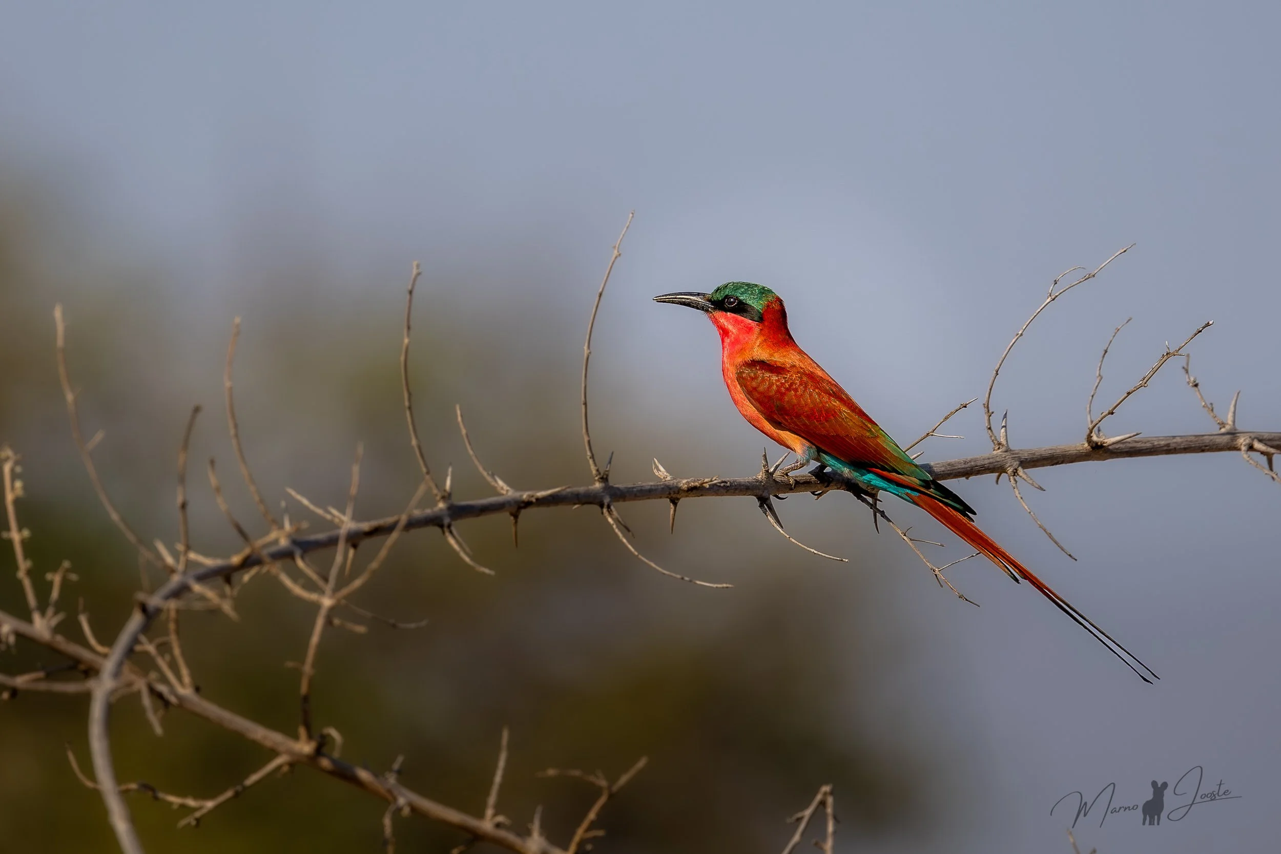The afternoon drive was quieter in terms of mammals, but the day finished beautifully with sundowners at a southern carmine bee-eater nesting colony, the air alive with colour and movement.