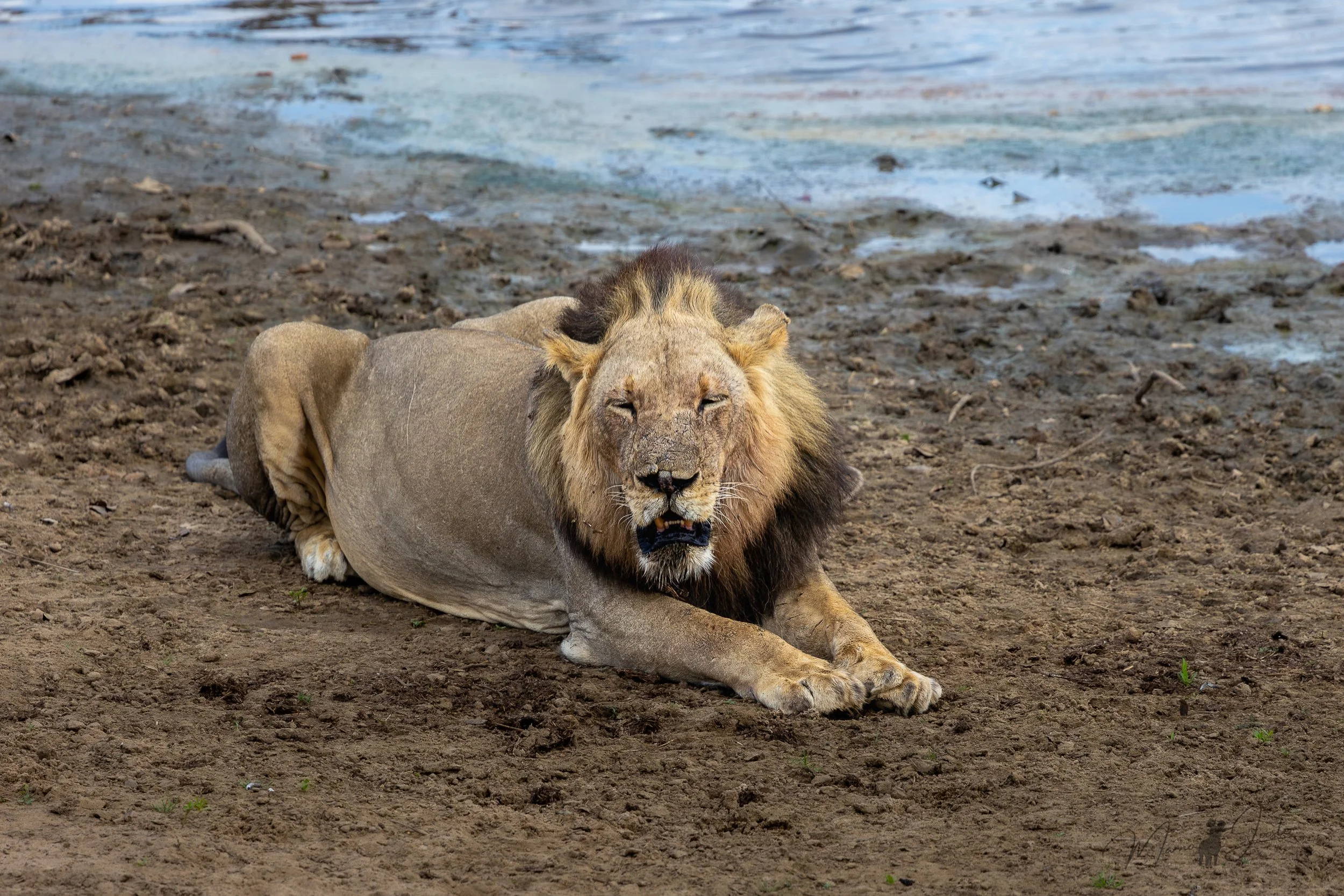 On the return journey, a giant kingfisher sat proudly with its catch, while directly below us a male and female lion lay stretched out at the waterβs edge, conserving energy in the midday heat. Later, a martial eagle was spotted with a freshly caught guinea fowl.